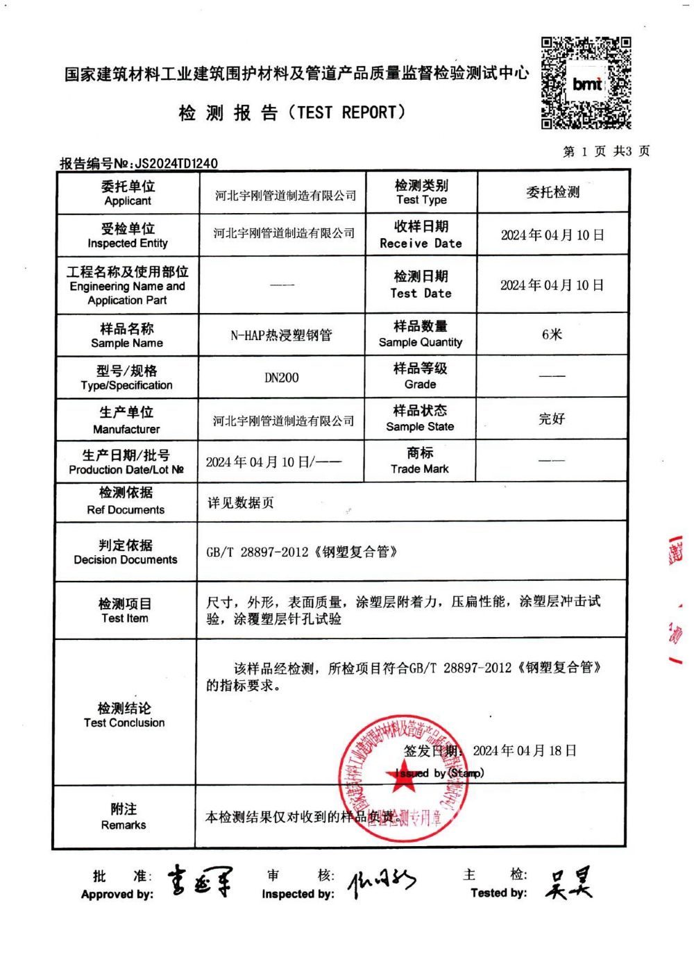N-HAP熱浸塑鋼管檢測報(bào)告