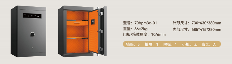 配置:6mm合金鋼箱體+10mm防鉆門板+雙C級鎖芯