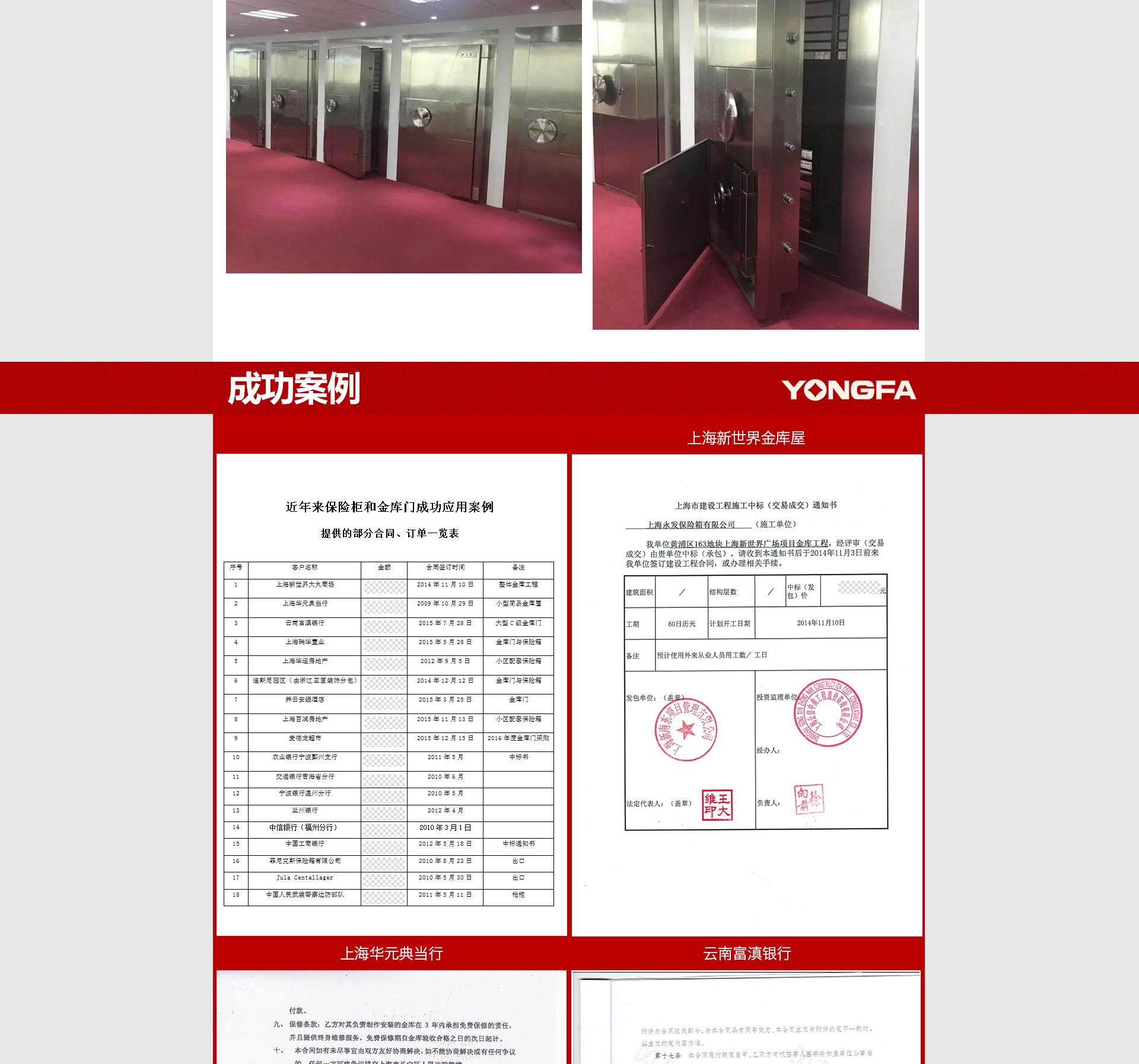 金庫(kù)門生產(chǎn)廠家的核心競(jìng)爭(zhēng)力體現(xiàn)在智能制造與場(chǎng)景適配能力。以永發(fā)金庫(kù)門為例: