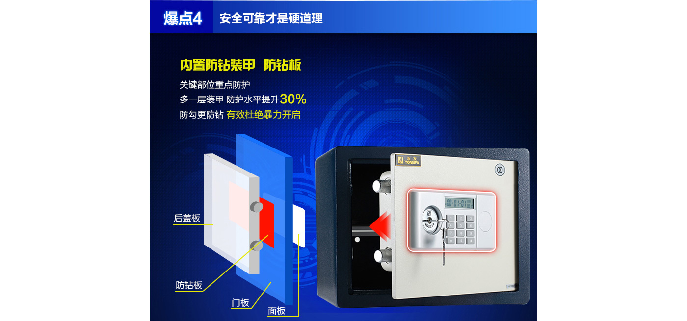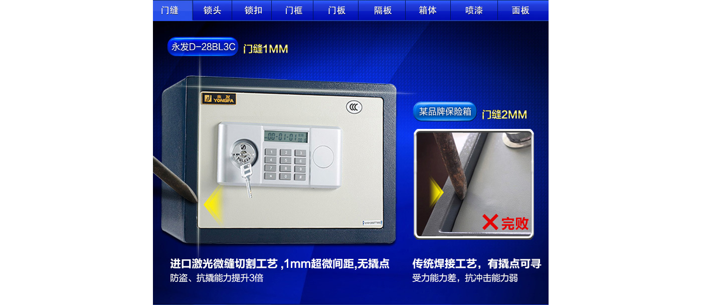 永發(fā)經(jīng)典電子系列3C認(rèn)證保險(xiǎn)箱D-28BL3C尺寸說明:280高*360寬*250深mm 重量:25kg
