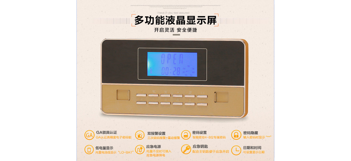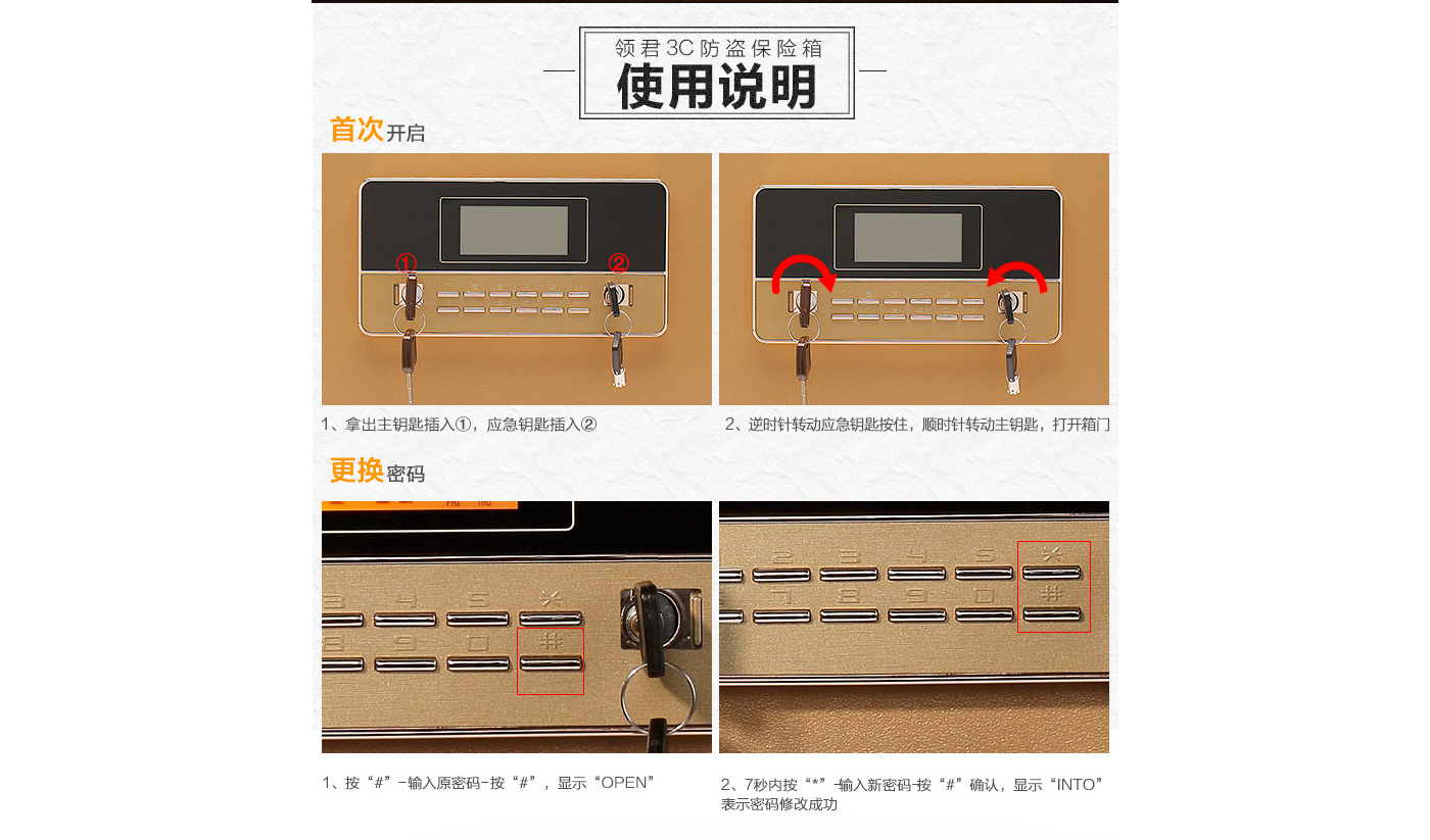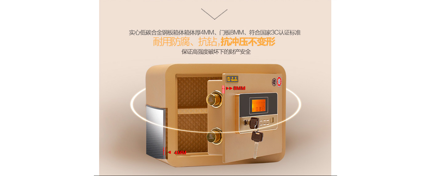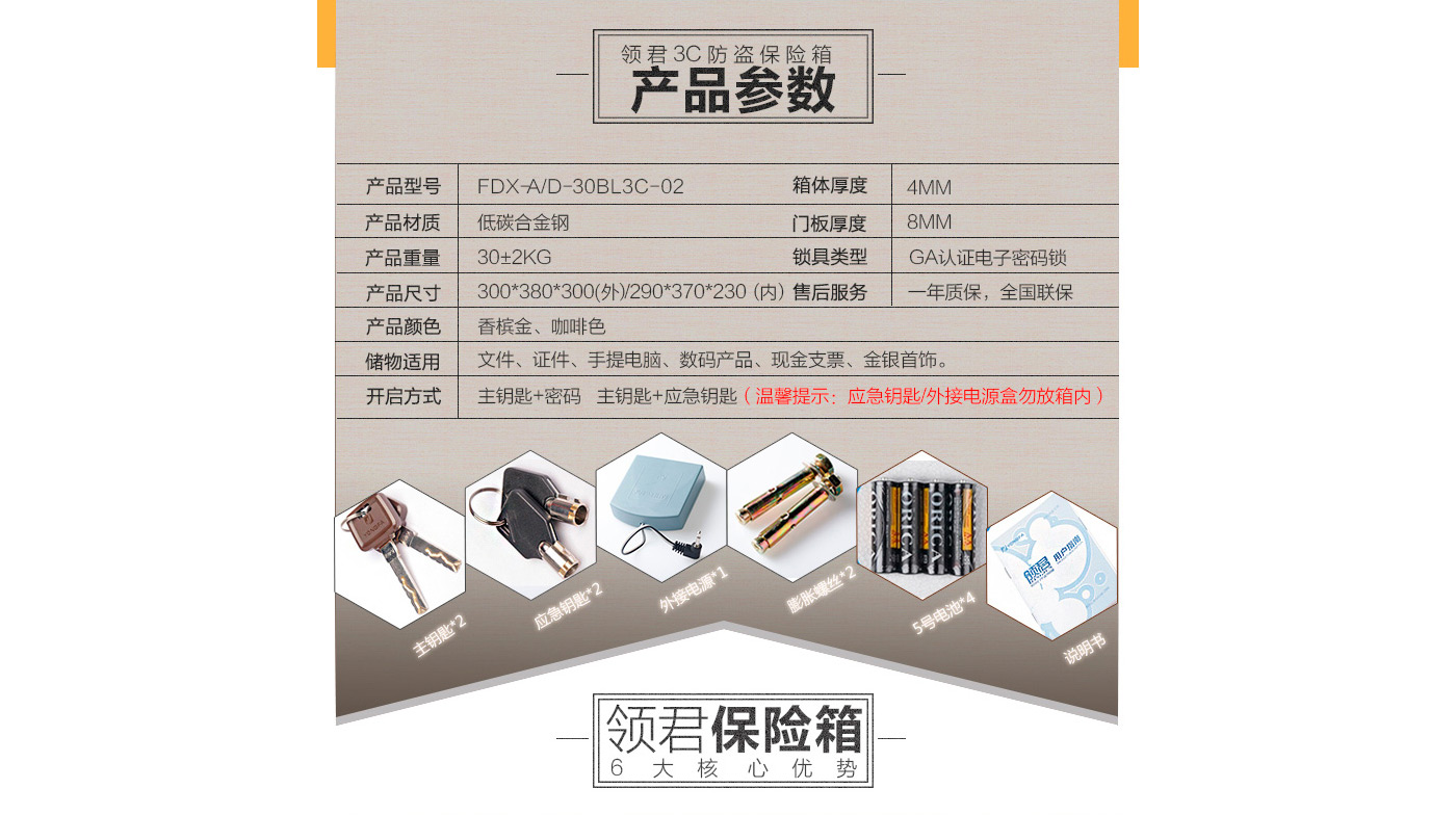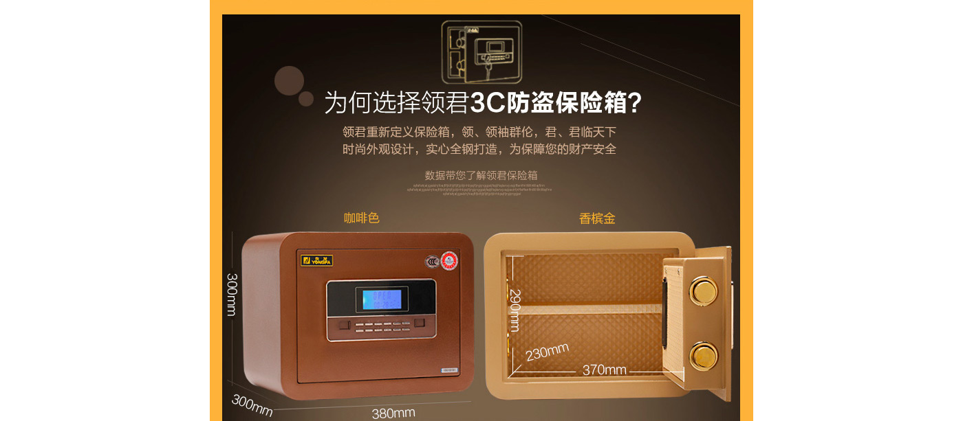 永發(fā)領(lǐng)君電子式保險箱D-30BL3C-02尺寸說明:300高*380寬*310深mm 重量:30kg