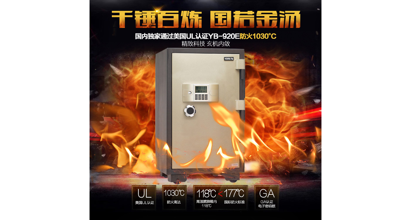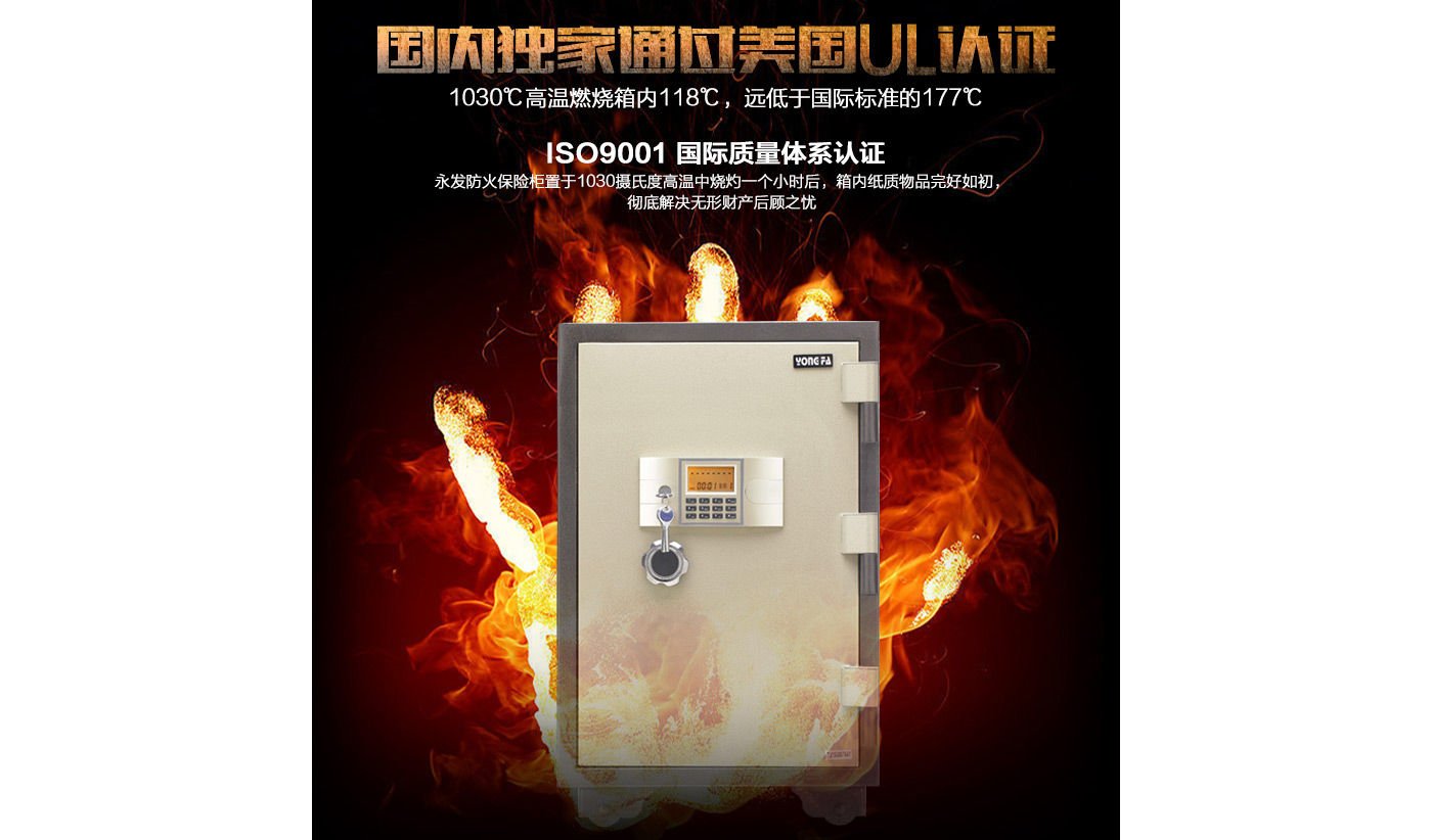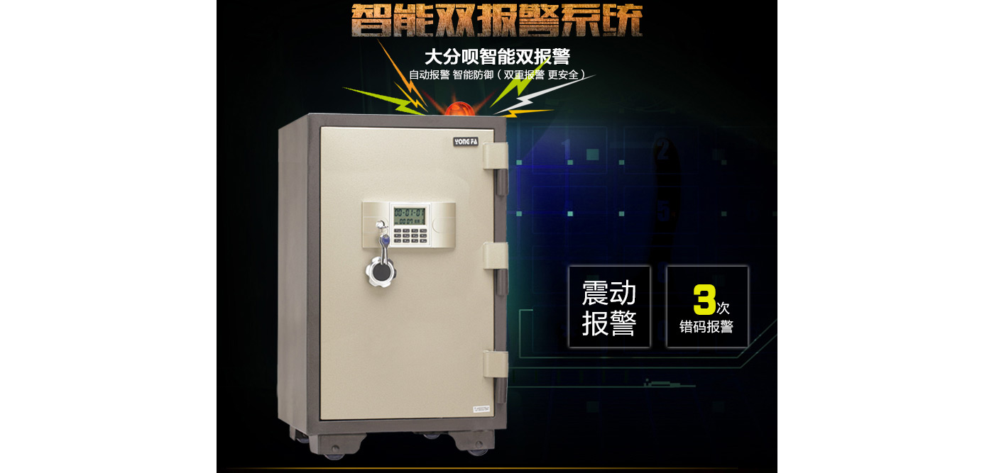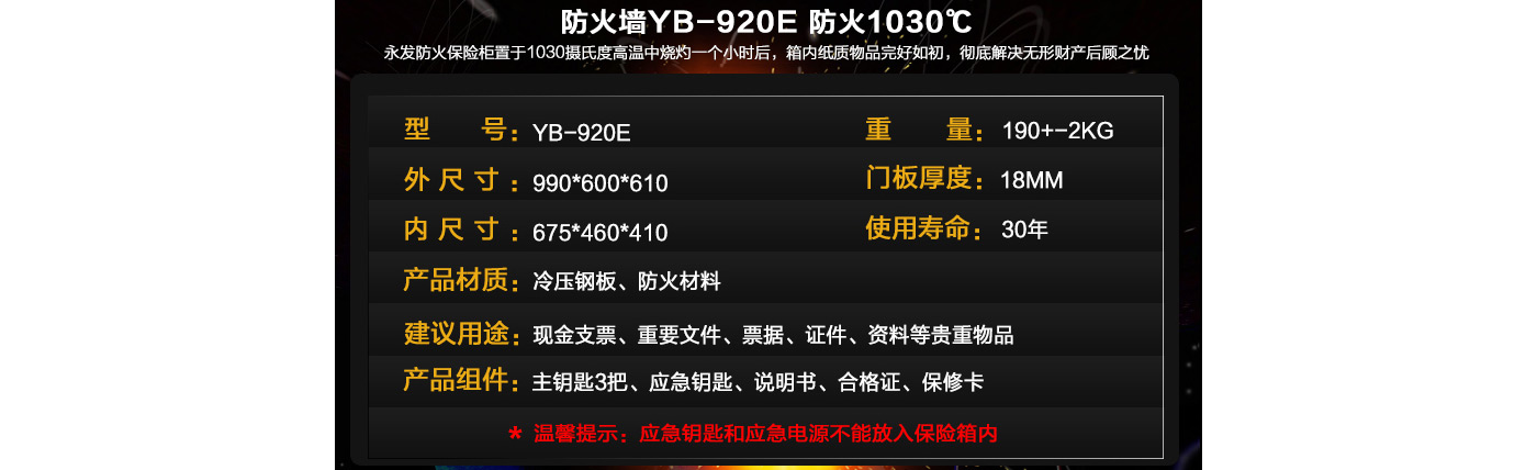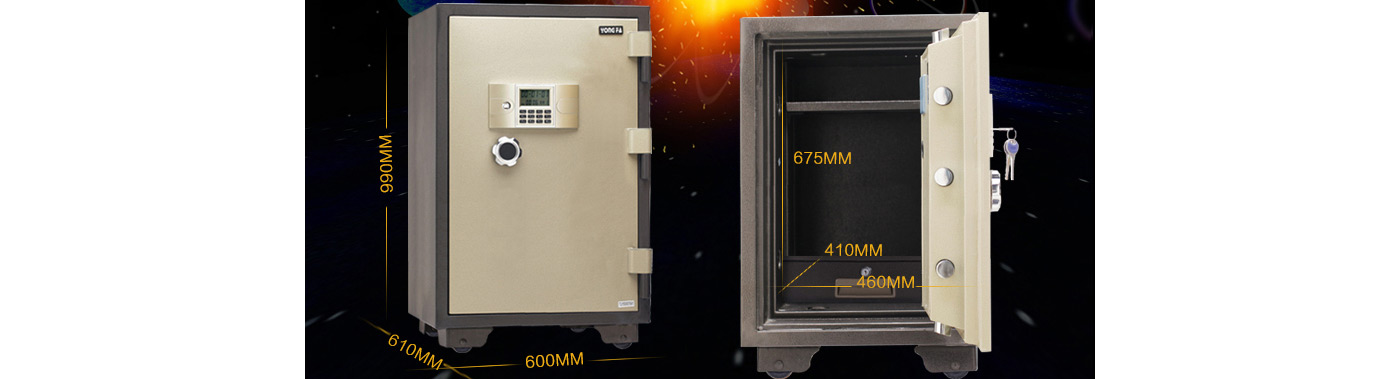 永發(fā)電子防火柜YB-920E尺寸說明:990高*600寬*610深mm(含底座) 重量:190kg