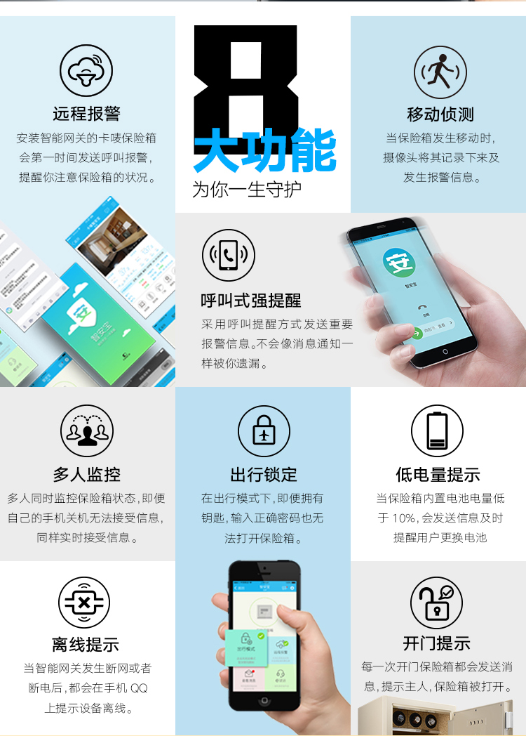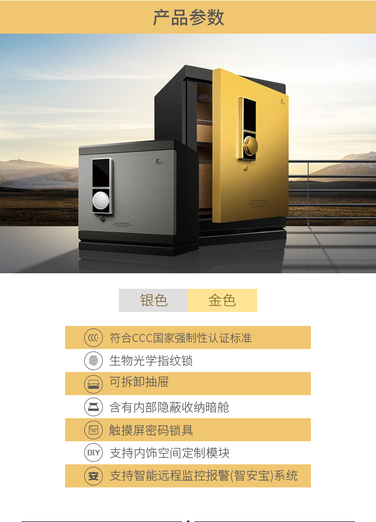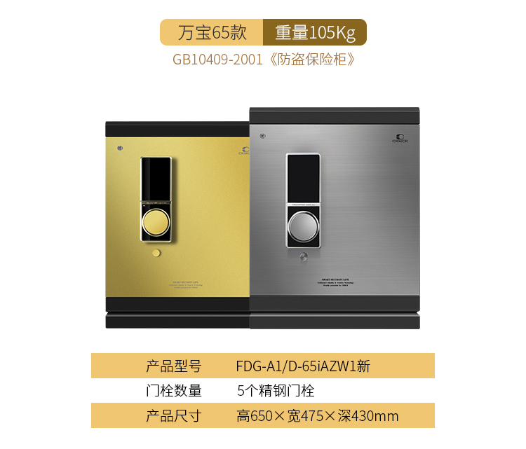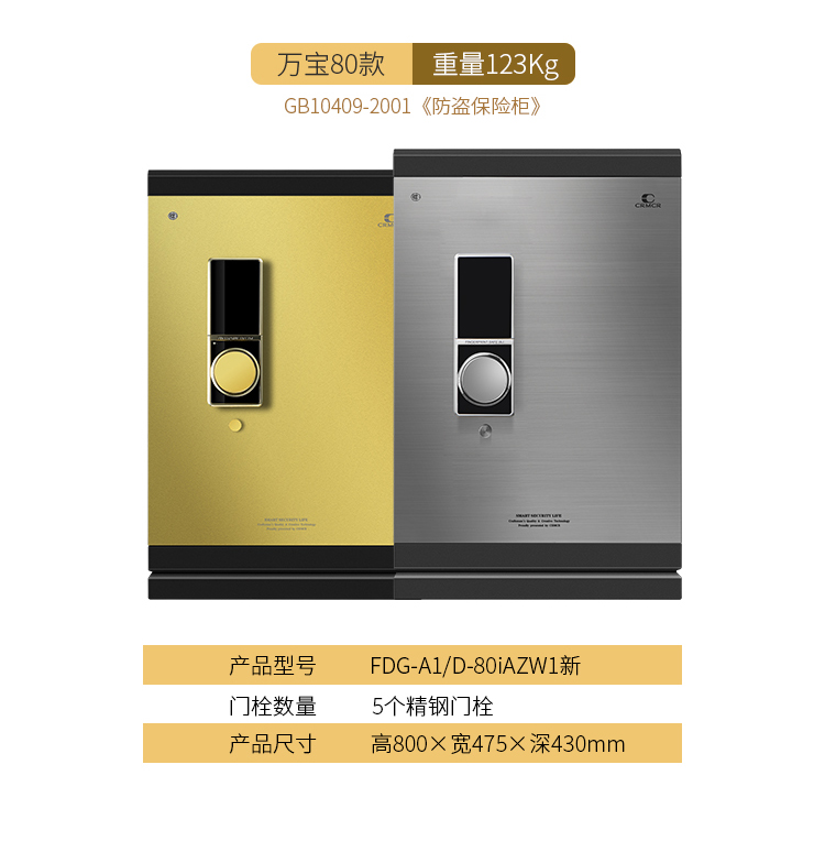 卡嘜萬寶指紋+電子密碼系列3C認(rèn)證保險(xiǎn)箱D-80iAZW1尺寸說明:850高*475寬*430深mm(含底座) 重量:123kg